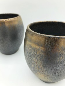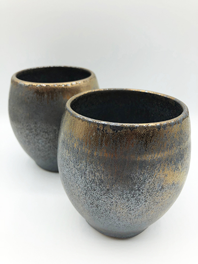 Une tasse qui se love dans la main, qui s’y réfugie pour tenir chaud. En grès de Saint-Amand, avec l’émail Rusticagold à l’aspect métallique aux mille irisations.