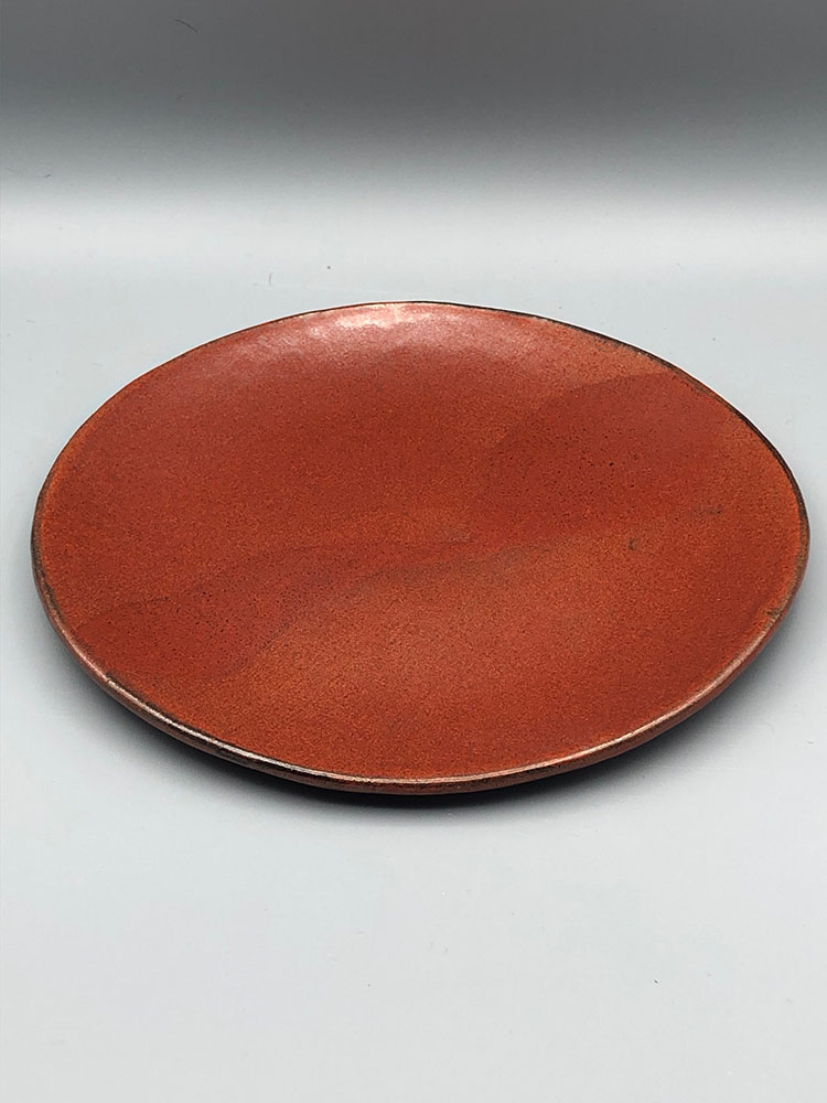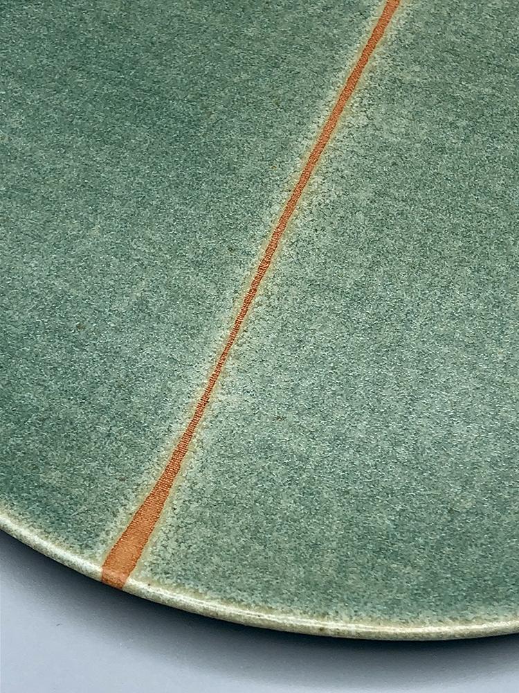Assiette à dessert ronde avec une ligne épurée, légère. Le plat est texturé, donnant une densité au décor, pour présenter vos créations culinaires avec originalité. Plusieurs décors sont disponibles. En grès de Saint-Amand, émail Vert enneigé, Rouge Forge, ou Blanc satin. La ligne orange sur l’émail Vert enneigé est une réaction chimique de la terre brute, dynamisant l’ensemble et rendant chaque pièce unique.