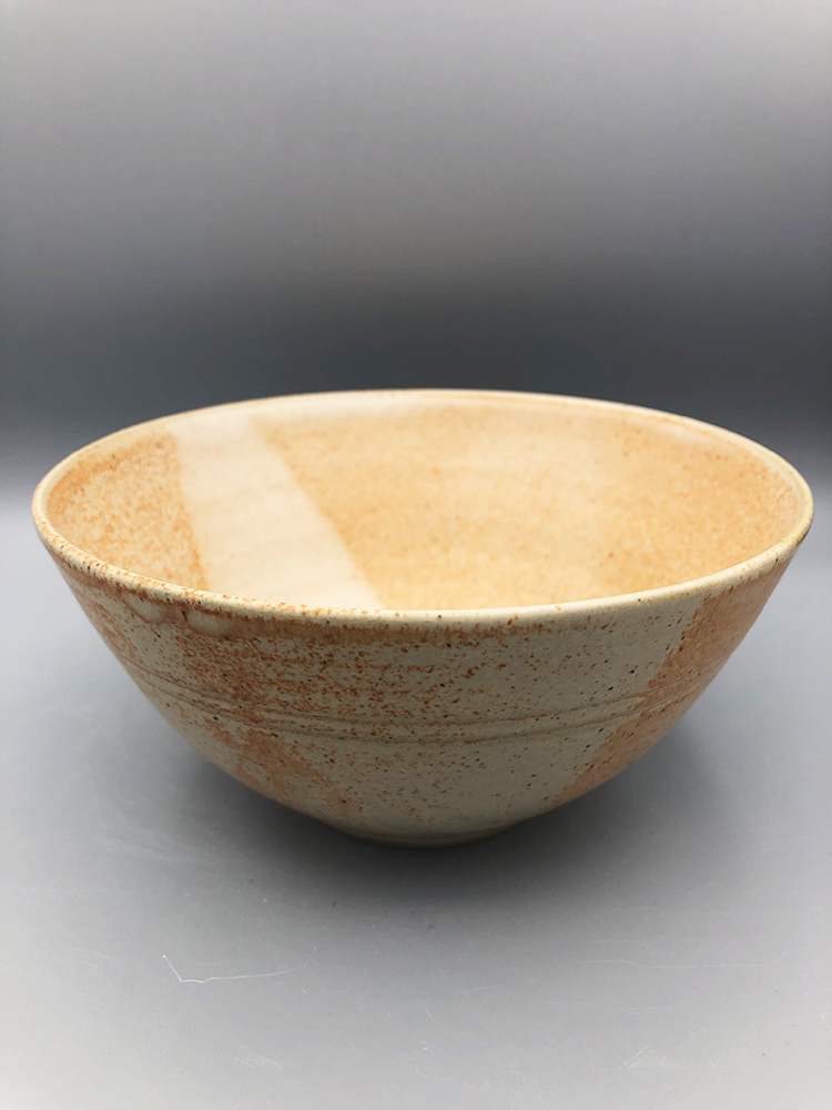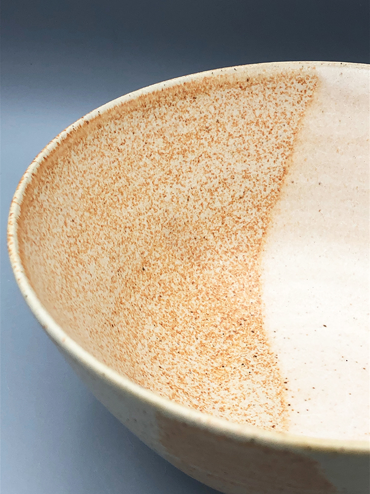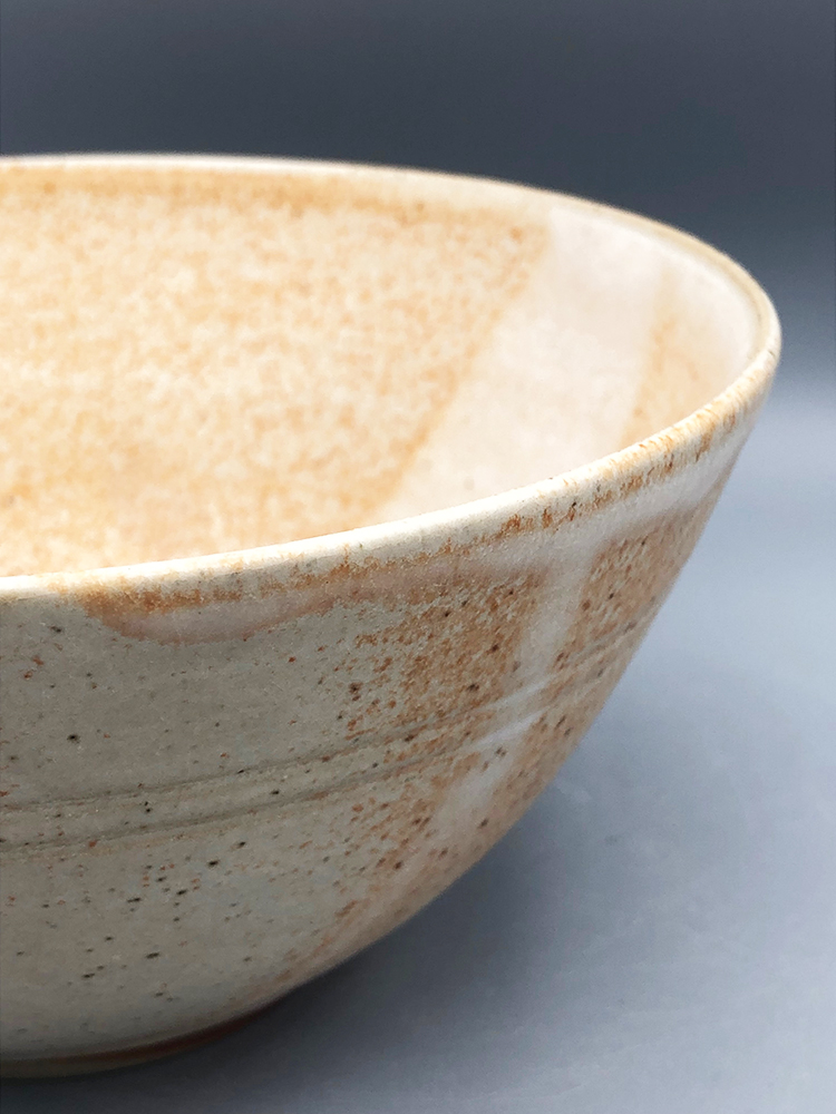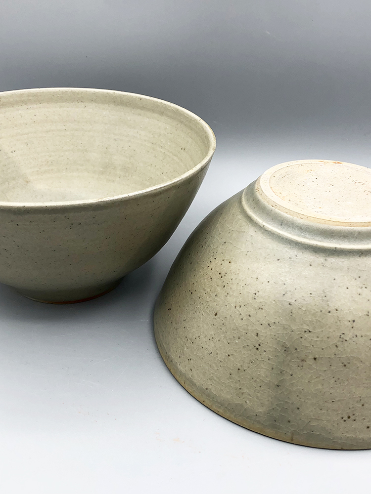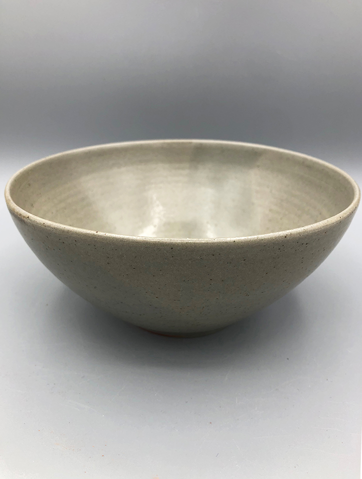 Un bol sobre, au pied fin et à la ligne courbée, bas et très évasé pour vos boissons chaudes, soupes, salades, ou toute autre création culinaire originale et succulente ! En grès de Saint-Amand, émail Sable ou émail Céladon. Le fer, dont la terre est chargée, ressort par taches noires sous l’émail.