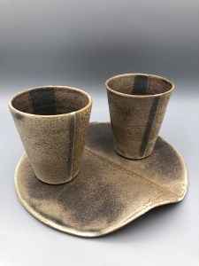 Ensemble pour deux personnes, deux tasses à expresso Victoria présentées sur leur plateau rond. La ligne se fait vague pour être manipulée facilement. Cette conversation vous accompagnera lors d’une pause café pour tenir chaud, qui apportera douceur et réconfort. En grès de Saint-Amand. Plusieurs décors sont disponibles : émail Vert enneigé, émail Rouge Forge, émail Orage, ou émail Lierre.