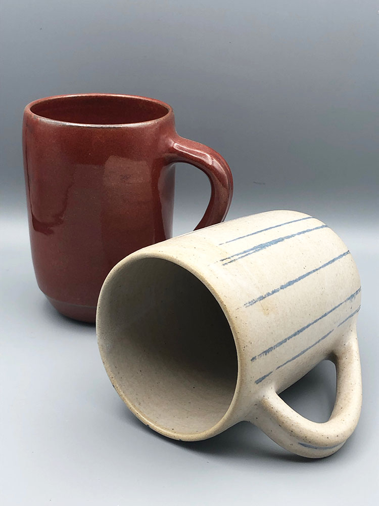 Tout en équilibre, ce mug haut, à l’arête basse pour une bonne stabilité, donne intensité et réconfort pour une pause thé graphique. Il a une grande capacité pour les grands buveurs de boisson chaude ! En grès de Saint-Amand, plusieurs décors disponibles : émail Rouge Forge, ou rayures à l’engobe bleu et émail Blanc satin.
