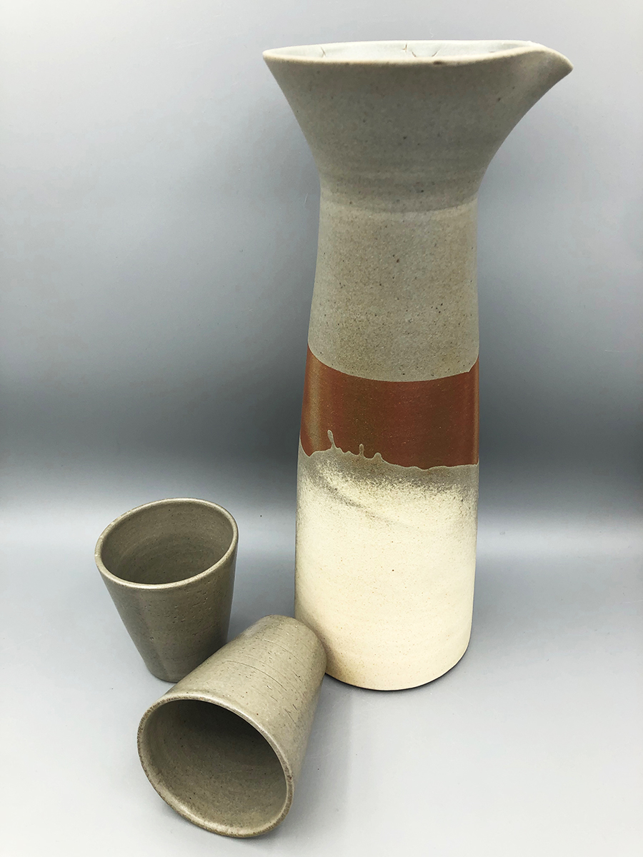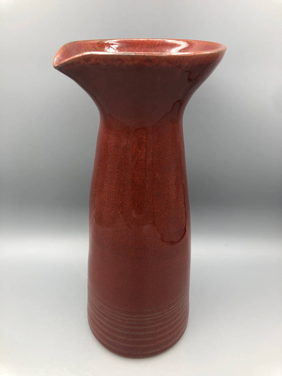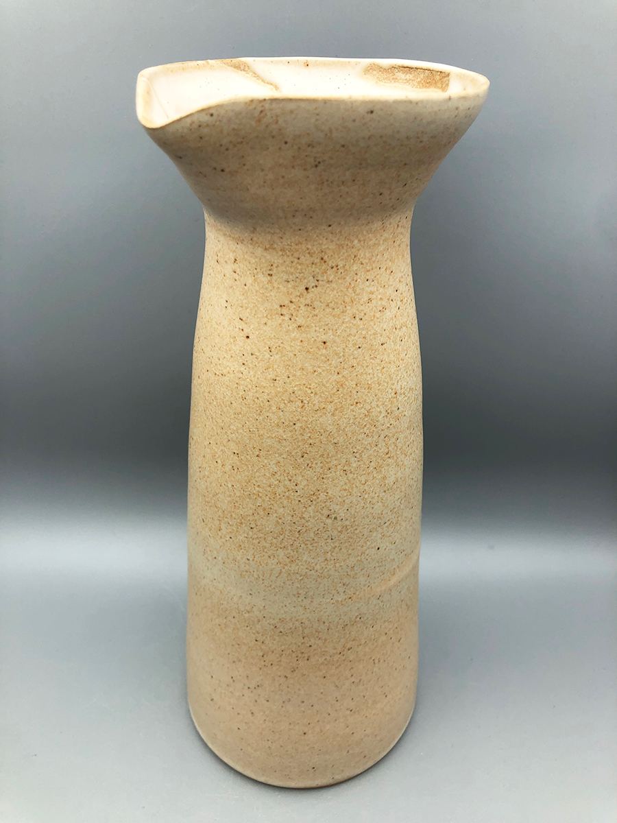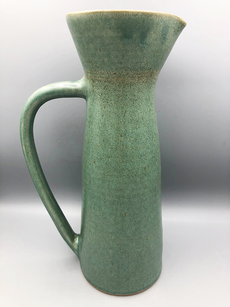 Tout en sobriété, ce haut pichet conique habillera votre table avec originalité. La main se pose autour du cou du pichet pour une préhension confortable, et verser tout en douceur. Il existe également avec une anse pour une ligne plus classique. En grès de Saint-Amand, plusieurs décors sont disponibles : émail Vert enneigé, émail Rouge Forge, émail Sable, émail Céladon (cuit au bois). Sa contenance varie de 0,45L à 0,70L.