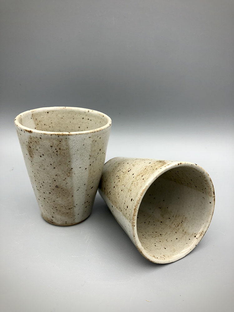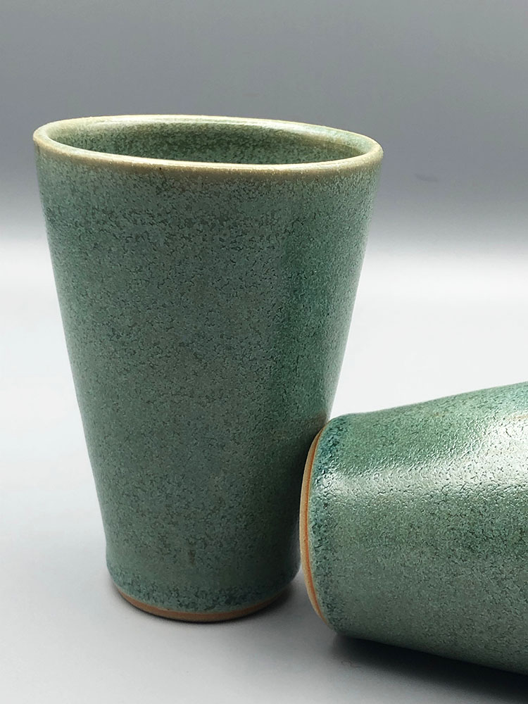 Une petite tasse à expresso sans anse à la ligne épurée, qui se réfugie dans la main pour tenir chaud, qui apporte douceur et réconfort. En grès de Saint-Amand. Plusieurs décors sont disponibles : émail Vert enneigé, émail Blanc satin, émail Rouge Forge, ou rayure à l’engobe bleu et émail Blanc satin. Des tasses Victoria ont également été cuites au four à bois, plusieurs décors sont disponibles : émail Rouge Forge, émail Vert enneigé, émail Céladon, émail Lierre, et émail Blanc satin. Des variations apparaissent selon le type de cuisson, au bois ou à l’électrique !
