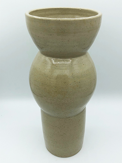 Grand vase aux géométries variées, qui s’empilent et donnent à l’ensemble un aspect élancé, à l’équilibre fragile. En grès de Saint-Amand, émail transparent pour laisser la pyrite de la terre apparente.